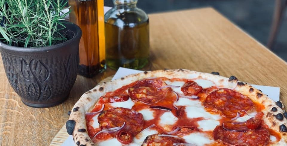 Pomodoro, Mozzarella Cubetti, Salami Spianata Piccante, Cebula Czerwona, Świeże Jalapénos -